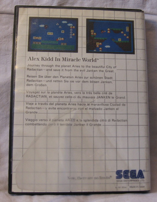 Vous êtes donc Alex Kidd, petit homme singe tout mignon et devez délivrer votre frère kidnappé par le méchant tyran "Janken le Grand". Graphiquement, le jeu est très agréable, et la supériorité technique de la 8 bits de Maître Sega se fait grandement sentir par rapport à la NES et ses sprites tout baveux [NDNico, tu vas te faire plein de copains avec ce genre de phrases] !