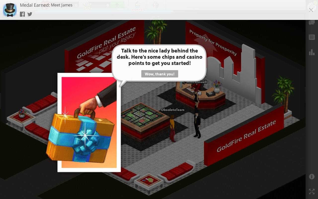 Assez typique d'un jeu de gestion, mais pas d'un jeu de casino. Et pour devenir un riche propriétaire comme lui, que faut-il faire ? Jouer au casino bien entendu ! Et comme c'est un chouette maire, il vous file une valise remplie de jetons, histoire de vous faire la main.