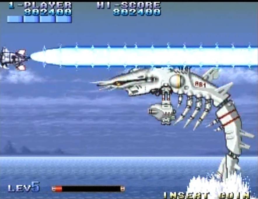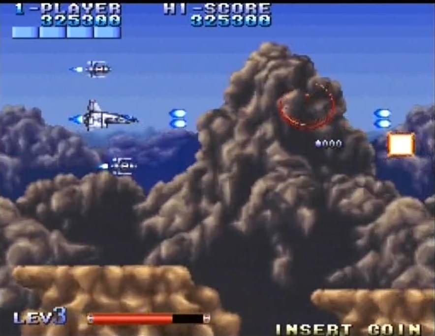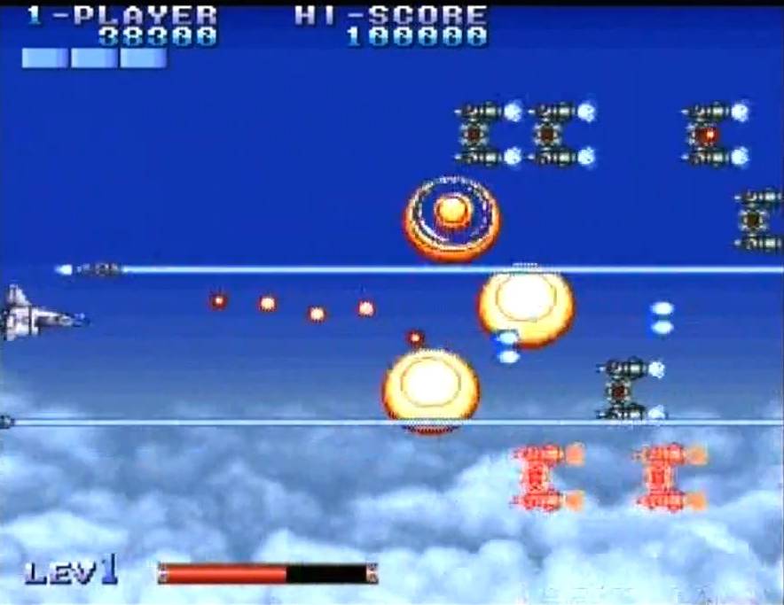 Au début de chaque niveau, on dispose de trois boucliers. Se faire toucher en enlève un à chaque fois. Quand on n'en a plus, on perd une vie et il faut à nouveau faire tourner le monnayeur. On reprend exactement là où l'on a perdu, ce qui facilite bien les choses quand on est en émulation.