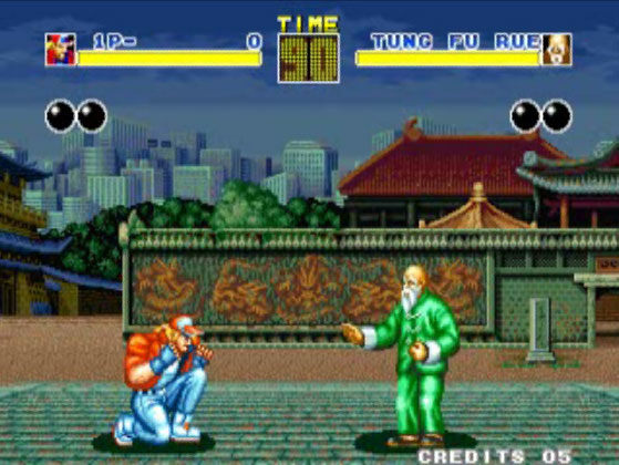 Fatal Fury, l'un des seuls - si ce n'est le seul - jeux à avoir pu rivaliser avec Street Fighter II. Posant les bases du gameplay si typique de SNK, il n'a pratiquement pas pris une ride.Premièrement, pour un jeu datant de 1991 (soit quelques mois seulement après la sortie de Street Fighter II), le moins que l'on puisse dire c'est que Fatal Fury a particulièrement bien vieilli. Les graphismes sont certes peu détaillés et les sprites des combattants plus petits qu'à l'accoutumée, mais le tout reste très correct.