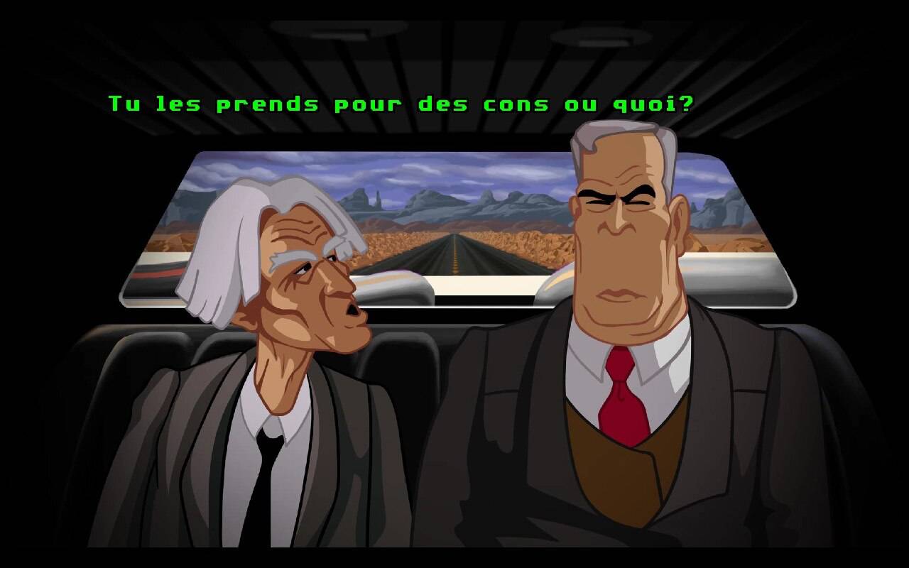 Car Full Throttle est généralement compréhensible dans son déroulement, le rendant plus facile qu'un Monkey Island je trouve. Mais tout de même, il y a régulièrement des petites choses qui font que l'on bloque et qui nous rappellent que l'on est bien dans un point'n click.
