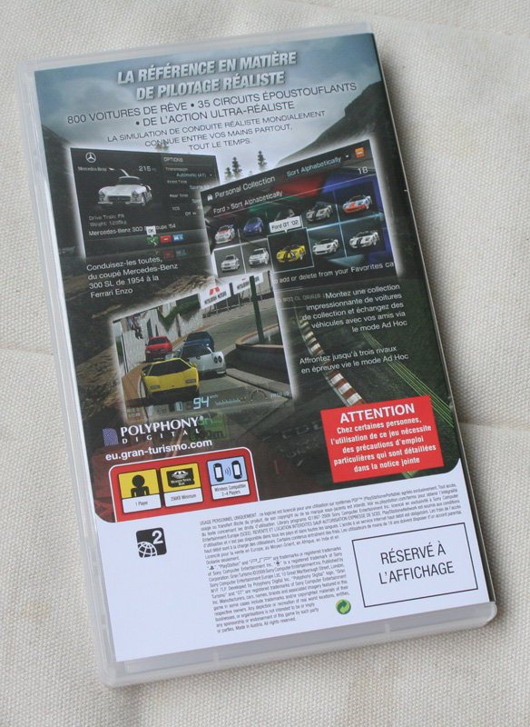Et justement, c'est peut être cette immersion qui manque à ce Gran Turismo portable. La faute au support ? Peut-être, mais également à une énorme lacune : l'absence de mode carrière. Oui, vous avez bien lu, vous ne pouvez faire que des courses uniques. La durée de vie reste tout de même très correcte, car il y a tout de même la bagatelle de 35 circuits (avec pas mal de variantes), et surtout 800 voitures.