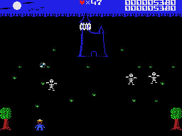 Le jeu se décompose en quatre phases. Durant la première, vous vous trouvez dans le cimetière. Deux vagues de squelettes vont vous assaillir, à vous de les repousser à grand coups de projectiles. Ensuite, vous passez aux tombes, avec cette fois deux vagues de fantômes. Viennent ensuite les extérieurs du château, avec des monstres, des squelettes et des fantômes. Là, tout content, vous croyez avoir fini le jeu. Manque de bol, le gros méchant vient vous balancer une grosse boulette dans la gueule qui vous enlèvera quatre points de vie.