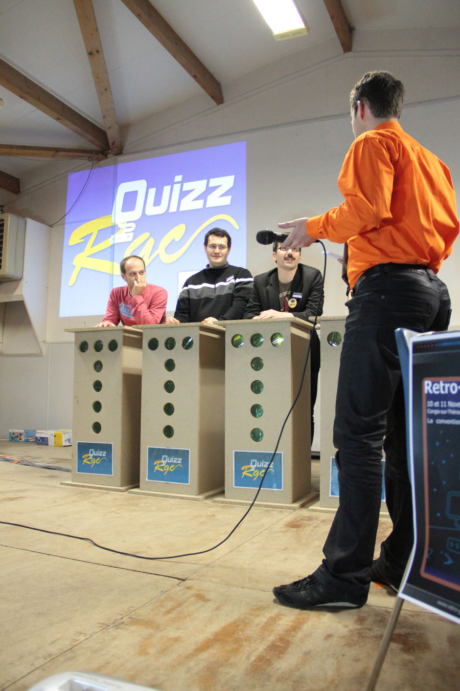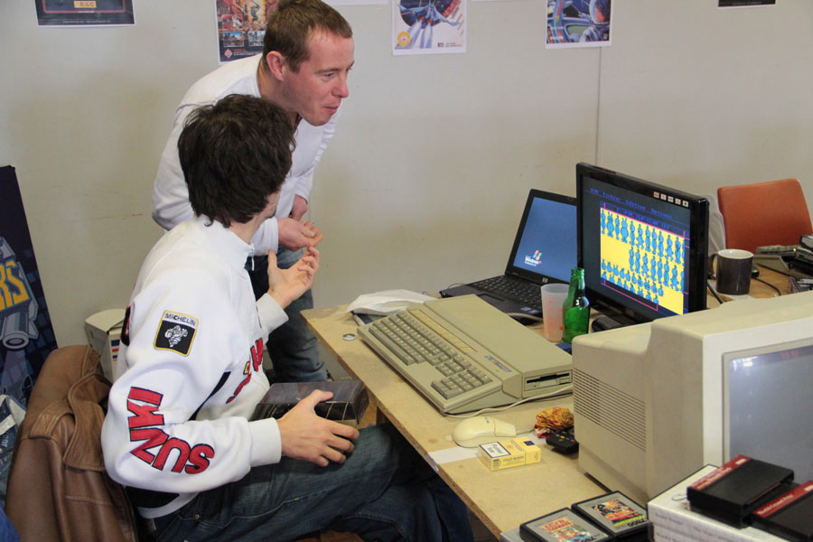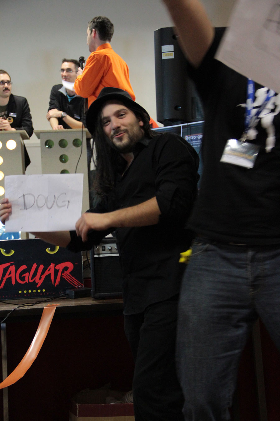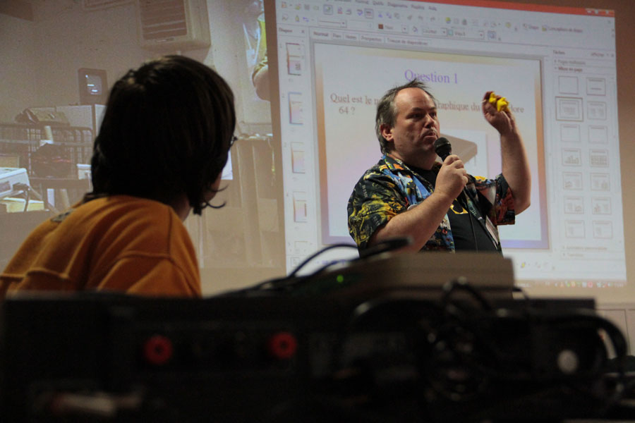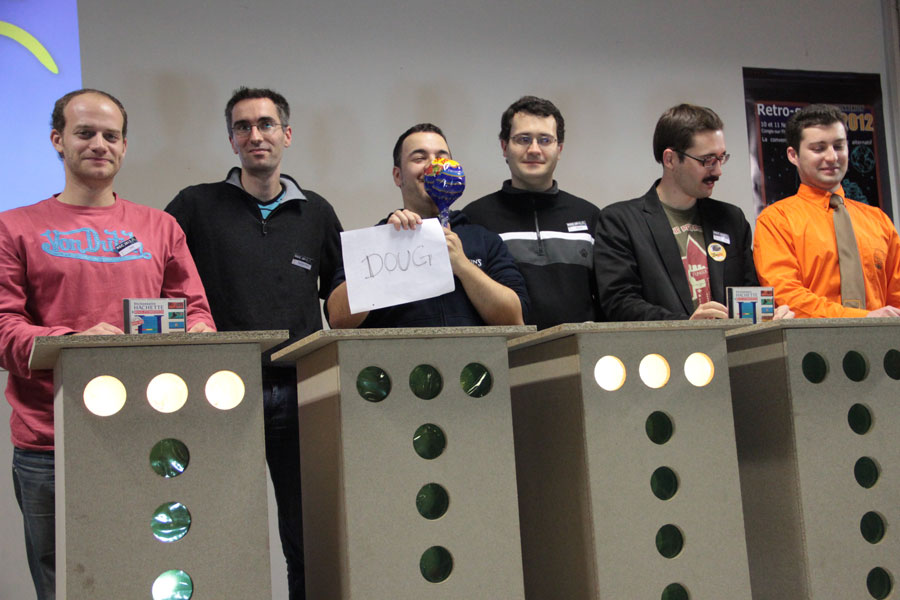 Dans tous les cas, la soirée est animée par d’autres événements (je passe rapidement sur les frasques de l’homme au chapeau), avec notamment un quizz sur le Commodore 64 (qui fêtait cette année-là ses 30 ans) où chacun a pu gagner des étoiles qui ont ensuite permis de jouer à un système d’enchères bien sympas.