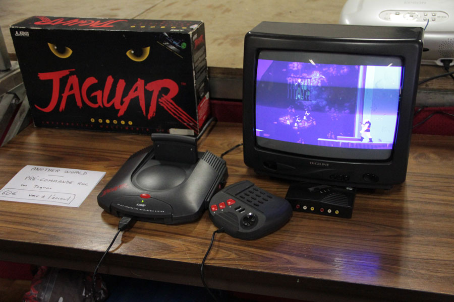 On trouve également de belles présentations, avec le nouveau jeu développé par Nicam. Ce dernier viendra le présenter sur l’estrade, et tous pourront s’y essayer durant le reste du week end, en attendant la sortie cartouche. La RGC était également très attendue, puisqu’elle ouvrait les réservations pour une version cartouche de l’adaptation d’Another World sur Jaguar. Le jeu était jouable et tous ont pu constater que l’ensemble était de qualité. Quand on sait que le titre a été développé sur la machine d’Atari sous la houlette d’Eric Chahi, on ne s’en étonnera pas.