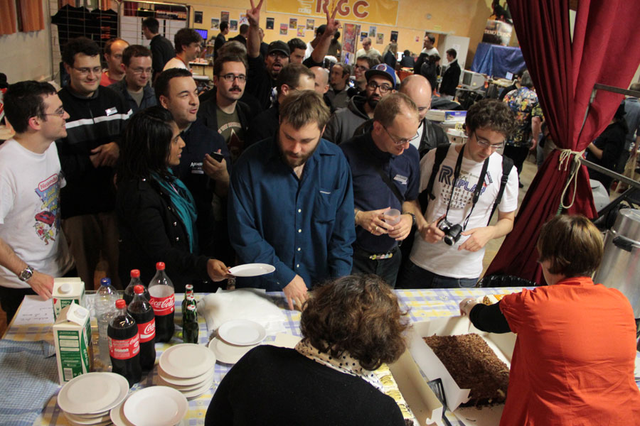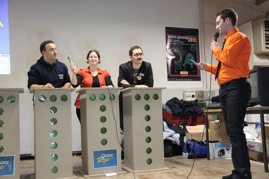 Un peu plus tard dans la soirée intervient le mot du président. Arethius nous parle de l’asso Retro Gaming Connexion, mais également de son anniversaire(pas le sien, celui de la manif) : eh oui, cette année, c’était les 10 ans. Alors du coup, pour fêter ça, on a eu droit à un chouette gâteau à une coupe de champagne. En gros ce que l’on aurait dû faire pour les Infoticaires mais que j’ai lamentablement zappé.