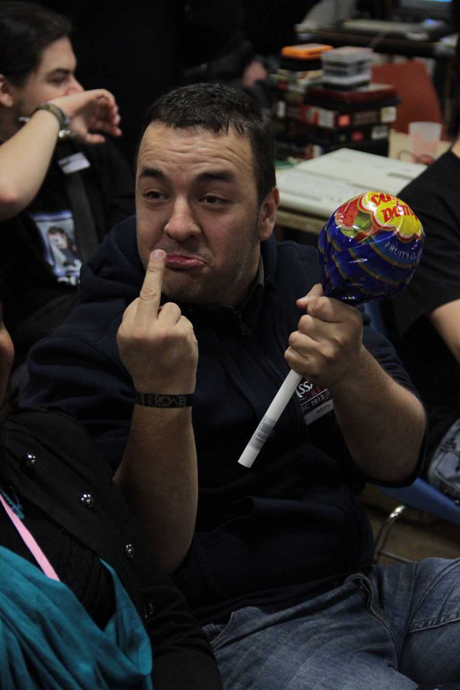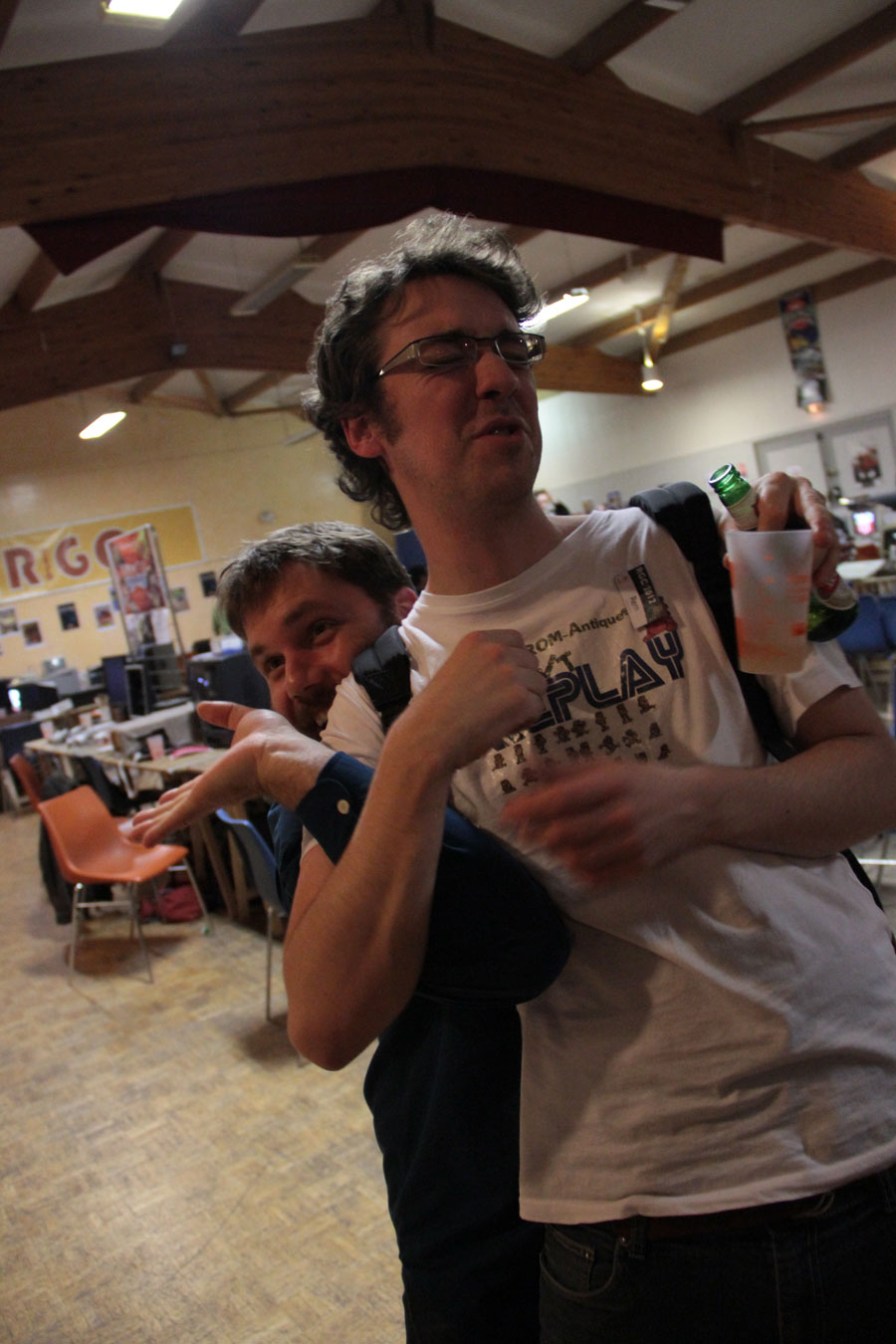 Enfin, on a également droit à une présentation des dijonais de Replay, où Rem et Youn nous ont montré comment déboucher une bouteille tout en jouant à des jeux vidéo. Le tout forcément officiellement sponsorisé par Chezmoa et l’asso Nostalgeek, vous imaginez bien.