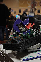 Finalement, une fois sur place, on voit que les organisateurs connaissent leur taf et savent optimiser chaque centimètre carré de la salle. Les stands sont donc aussi divers que nombreux, et on trouve même quelques tables libres… Eh oui, tout comme moi, beaucoup se sont dit que vue la place restreinte, il n’était pas forcément nécessaire d’apporter du matos qui n’intéresserait pas nécessairement du monde (ou plus exactement que ça nous donnait un bon argument pour ne pas l’apporter, vu que nous sommes tous de beaux spécimens d’indécrottables feignasses). On nous a même collé un bel autocollant (mérité) nous proclamant officiellement en tant que troll du salon pour ça. Classe. Dommage, je l’ai perdu dans un accident de caddie.