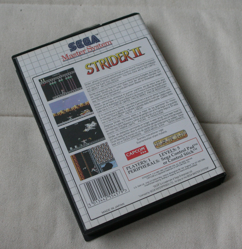 Après un premier épisode vraiment mauvais, Strider revient une nouvelle fois sur Master System. Cette fois, ce n'est plus Sega mais US Gold qui est derrière ce portage.Avec ce nouvel arrivant, la barre est un poil relevée, mais c'est tout. Décidément, la série ne sied pas beaucoup à la 8 bits de Sega.