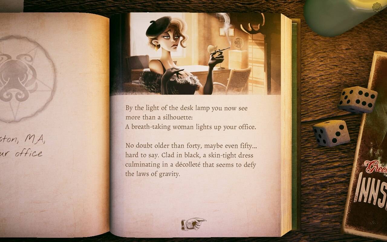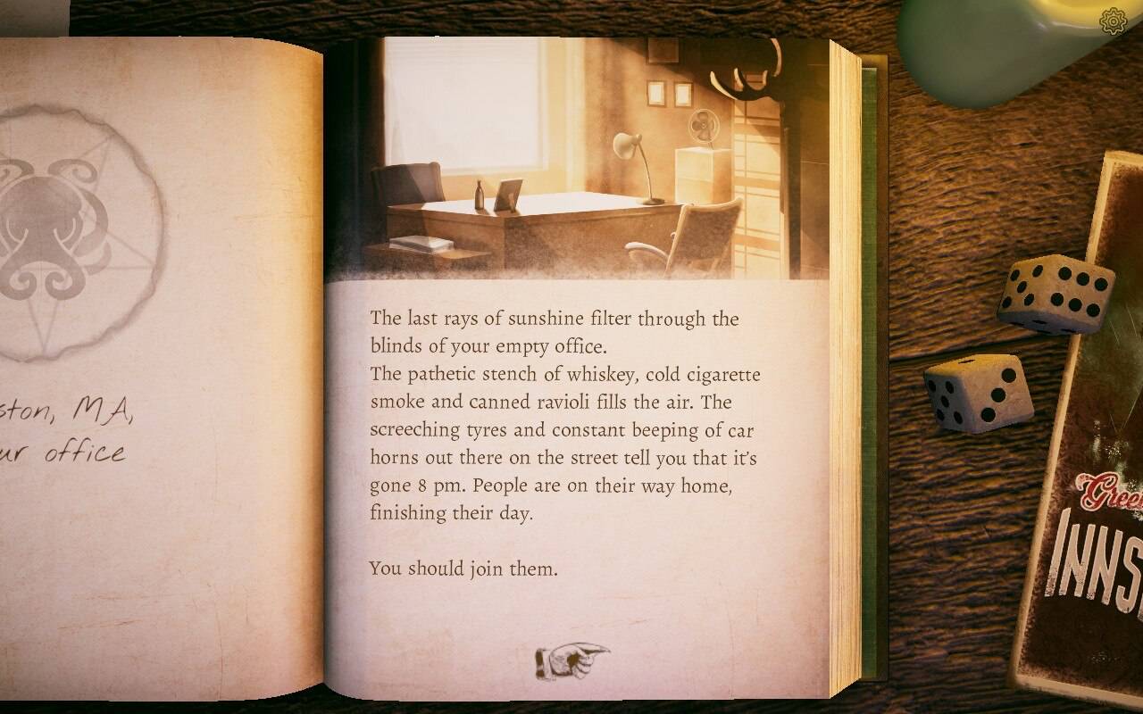 Vous incarnez un détective de Boston qui va devoir se rendre dans la ville d'Innsmouth afin de retrouver une petite fille. Vous êtes engagé par sa maman. Forcément, vous êtes l'image d'Épinal du détective privé : fauché, alcoolique, le tout dans un bureau jamais rangé ni nettoyé. Sauf que vous disposez d'un téléphone portable, l'action ne se déroulant pas dans les années 1920 ou 30, mais bel et bien en 2020, une bonne centaine d'années plus tard.