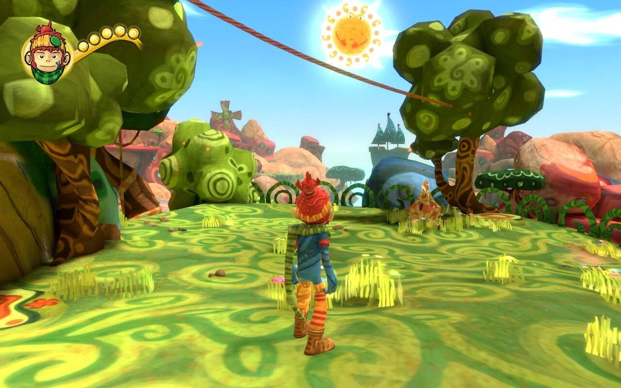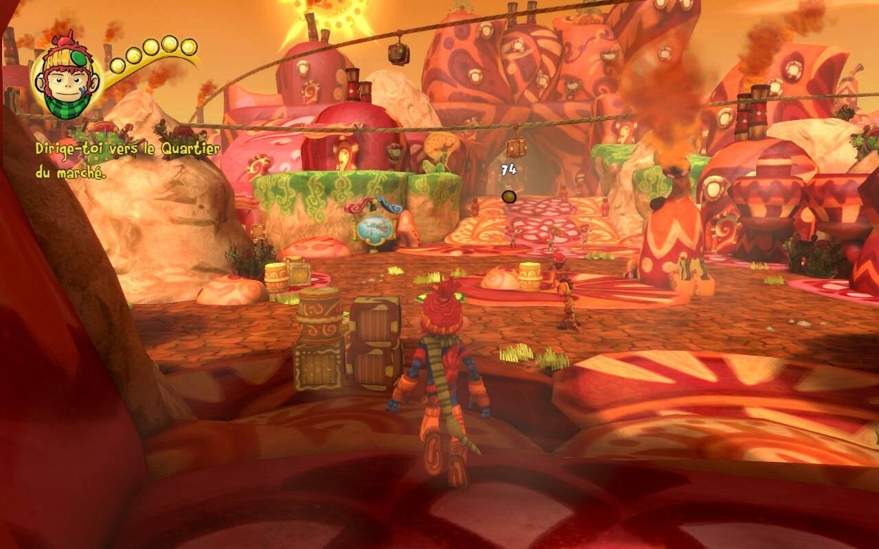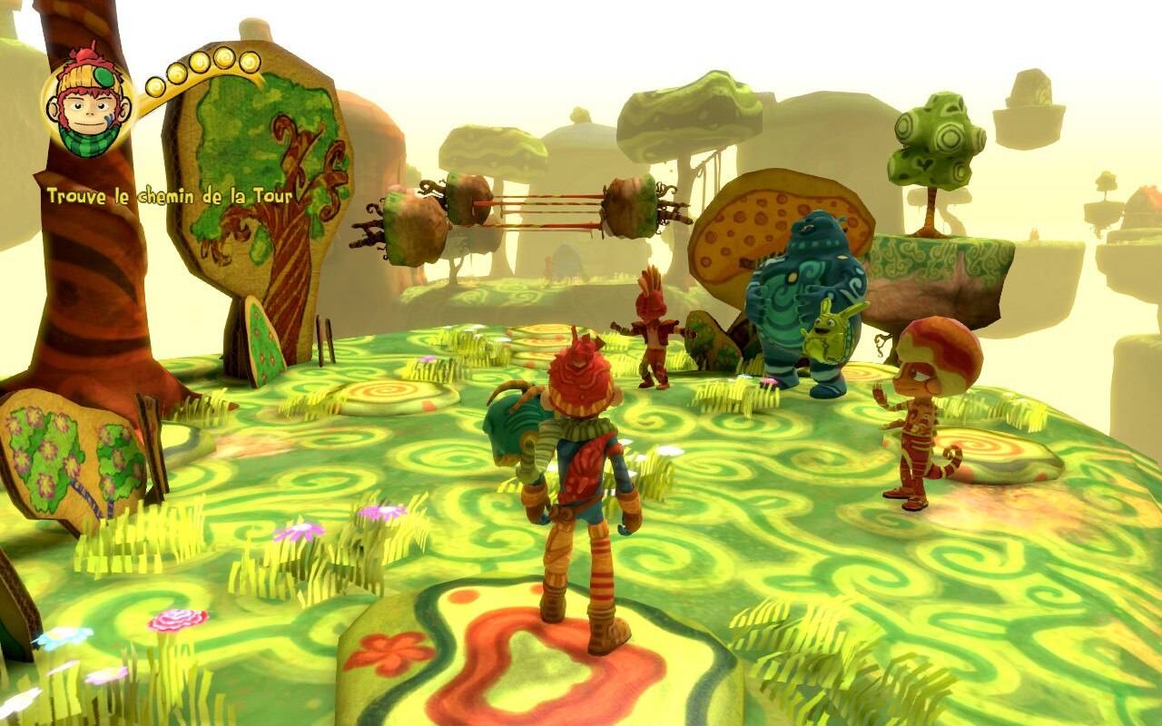 Le scénario est assez simple, votre personnage, à la forme de singe, se trouve être le dernier Tinker, c'est-à-dire celui qui est capable de manier les couleurs. Et ça tombe bien, car l'esprit violet a tout bousillé en invitant la grisaille à grignoter Colorville ! Vous devrez donc traverser trois quartiers (rouge, vert et bleu) afin de les libérer.