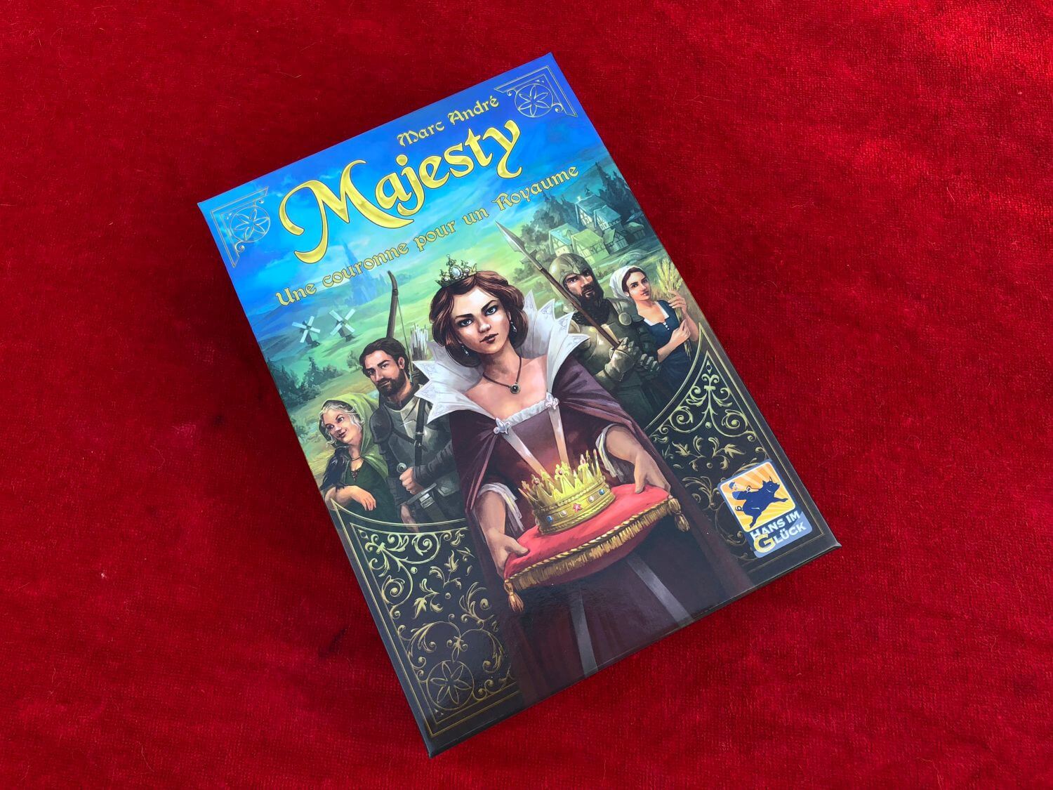 Une couronne pour un royaume : Majesty, un jeu pour 2-4 joueurs de Marc André, illustré par Anne Heidsieck, édité par Hans im Glück pour des parties d'environ 20-40min.